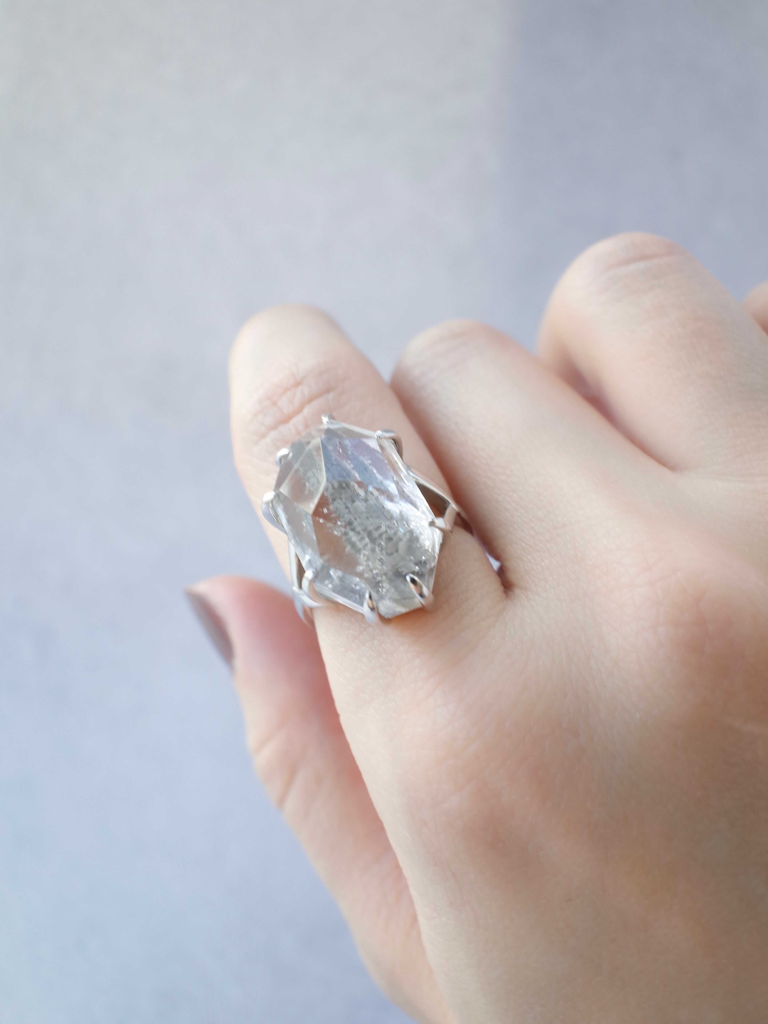 センターにまっすぐに入ったインクルージョンが、表面にファセットカットによって様々な表情を見せてくれます。