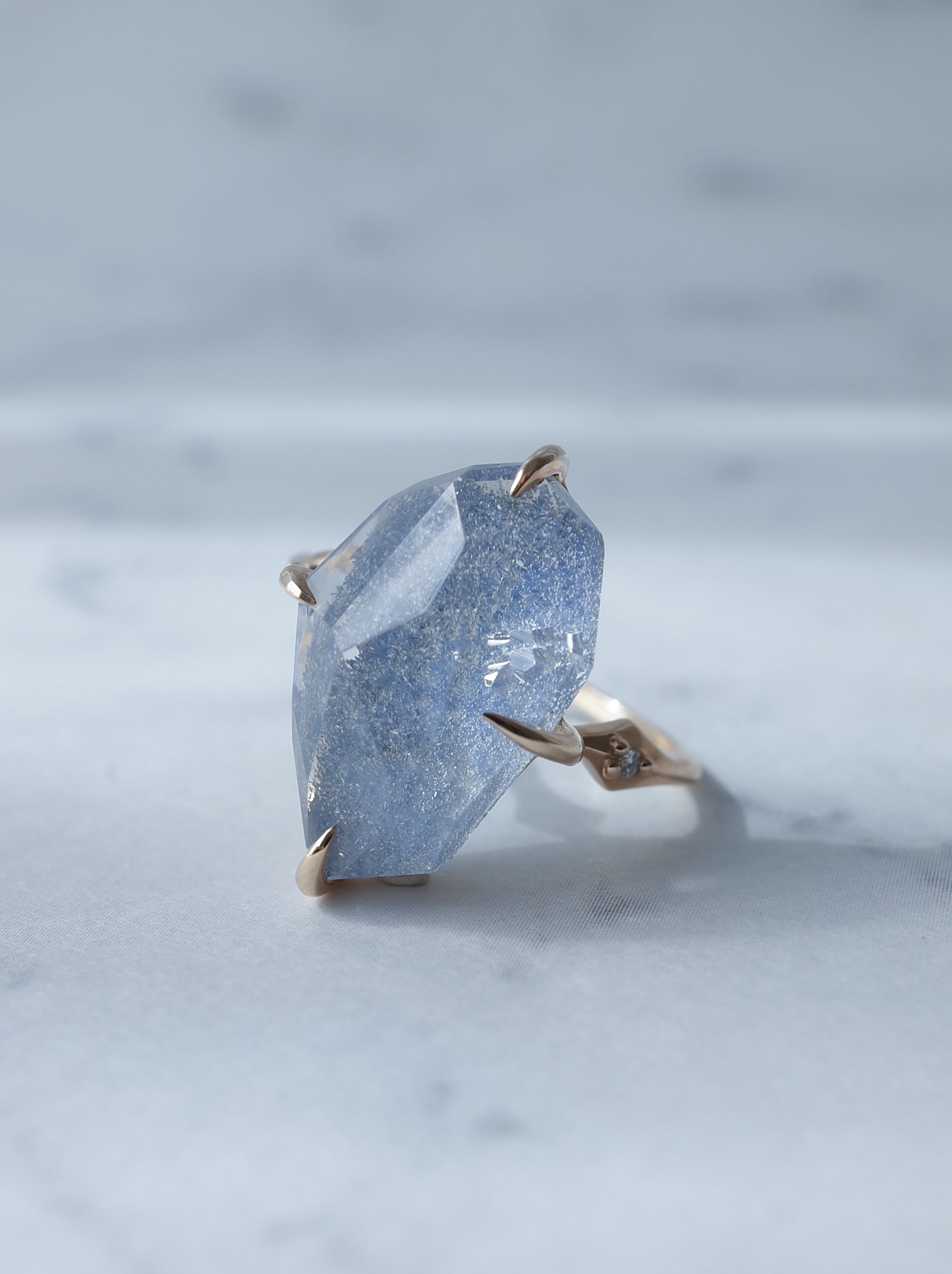 こちらは若手研磨師の大城かん奈さんがファセットを施してくださっている、通称『カンナカットシリーズ』。ランダムなカットによる反射の面白さとモダンなフォルムが魅力のコレクションです。