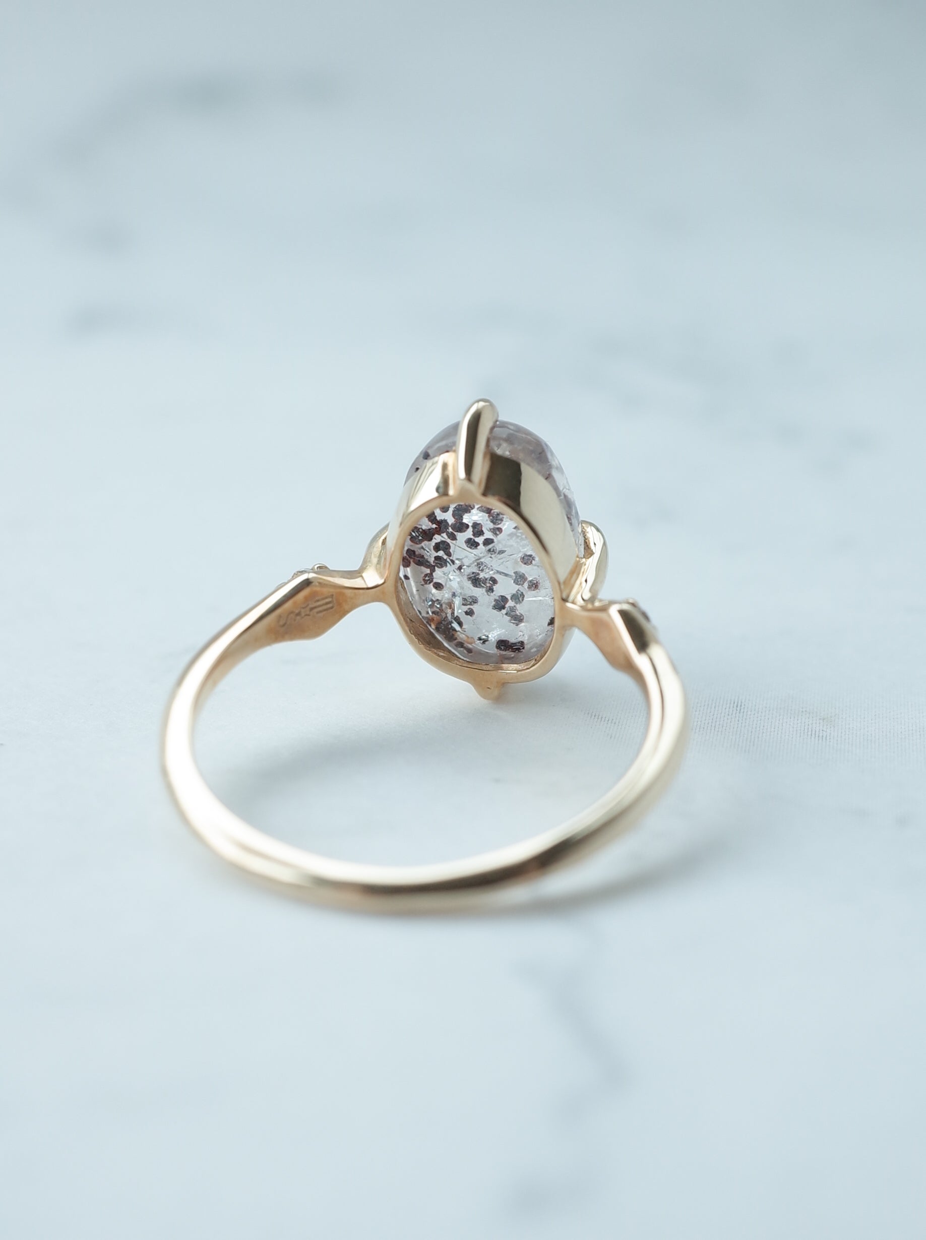 小さな花が咲き誇る花畑か、あるいはたわわに実った木の実のような、そんな景色が魅力です。小ぶりで指馴染みもよく使いやすい一点です。