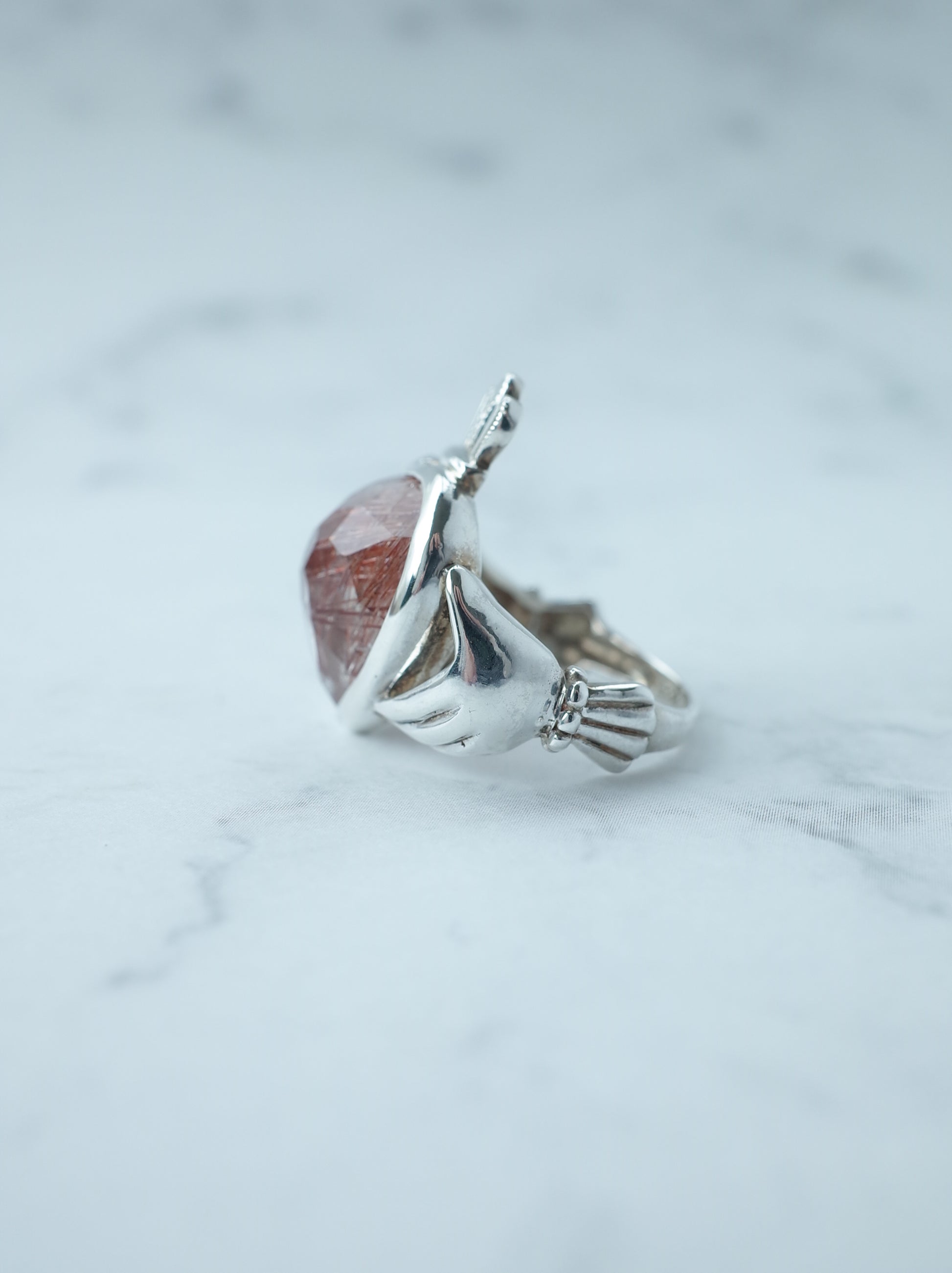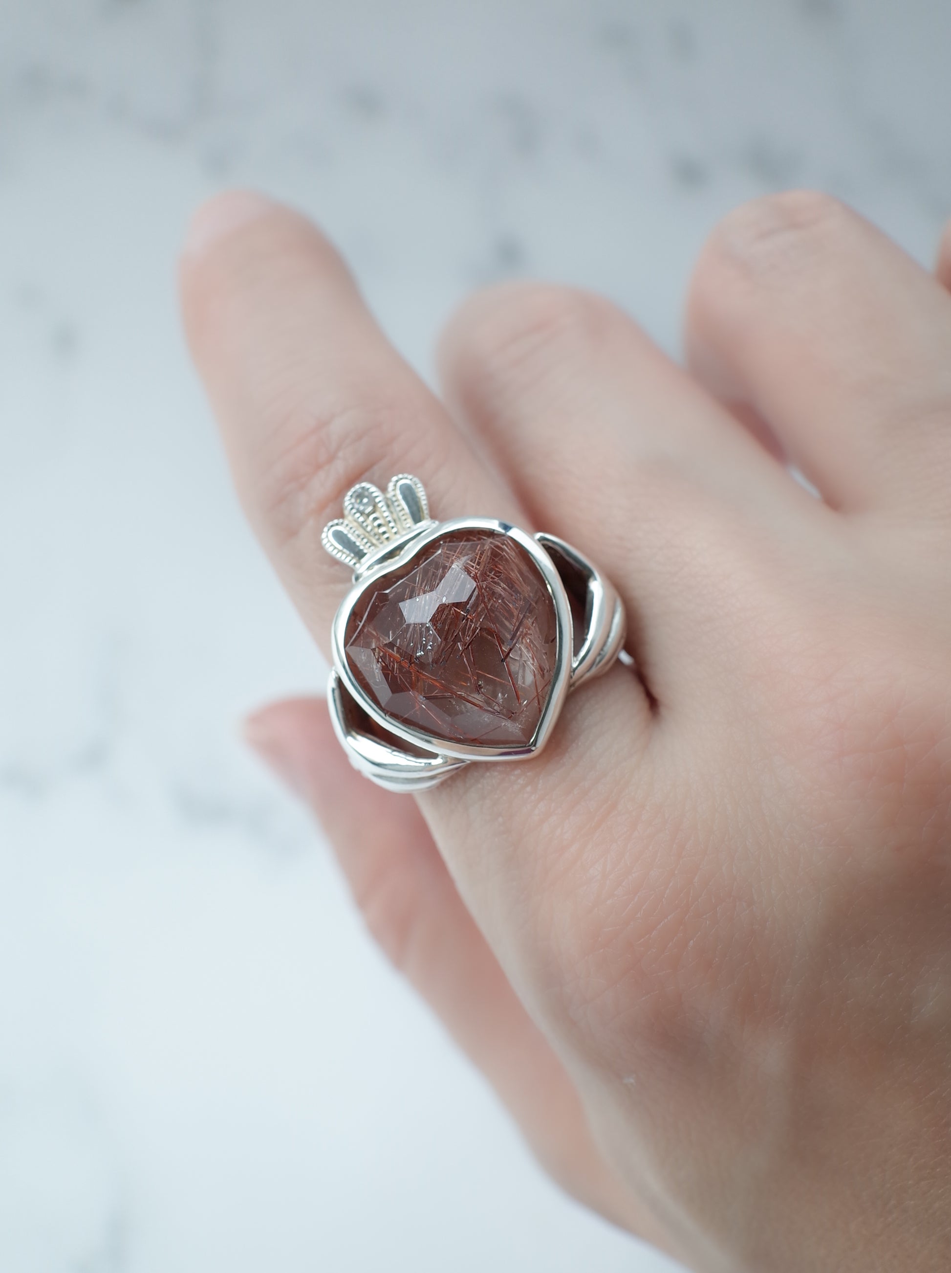 ハートが愛を、両手が友情を、そして王冠が忠誠を表したアイルランドの伝統的なデザイン『Claddagh』 そこへ弊社オリジナルでインクルージョンクォーツをハートにカットし、石の魅力を合わせた新しいスタイルのクラダリングは、デザイナーが暮らしたことのある国だからこその思いを乗せたコレクションです。