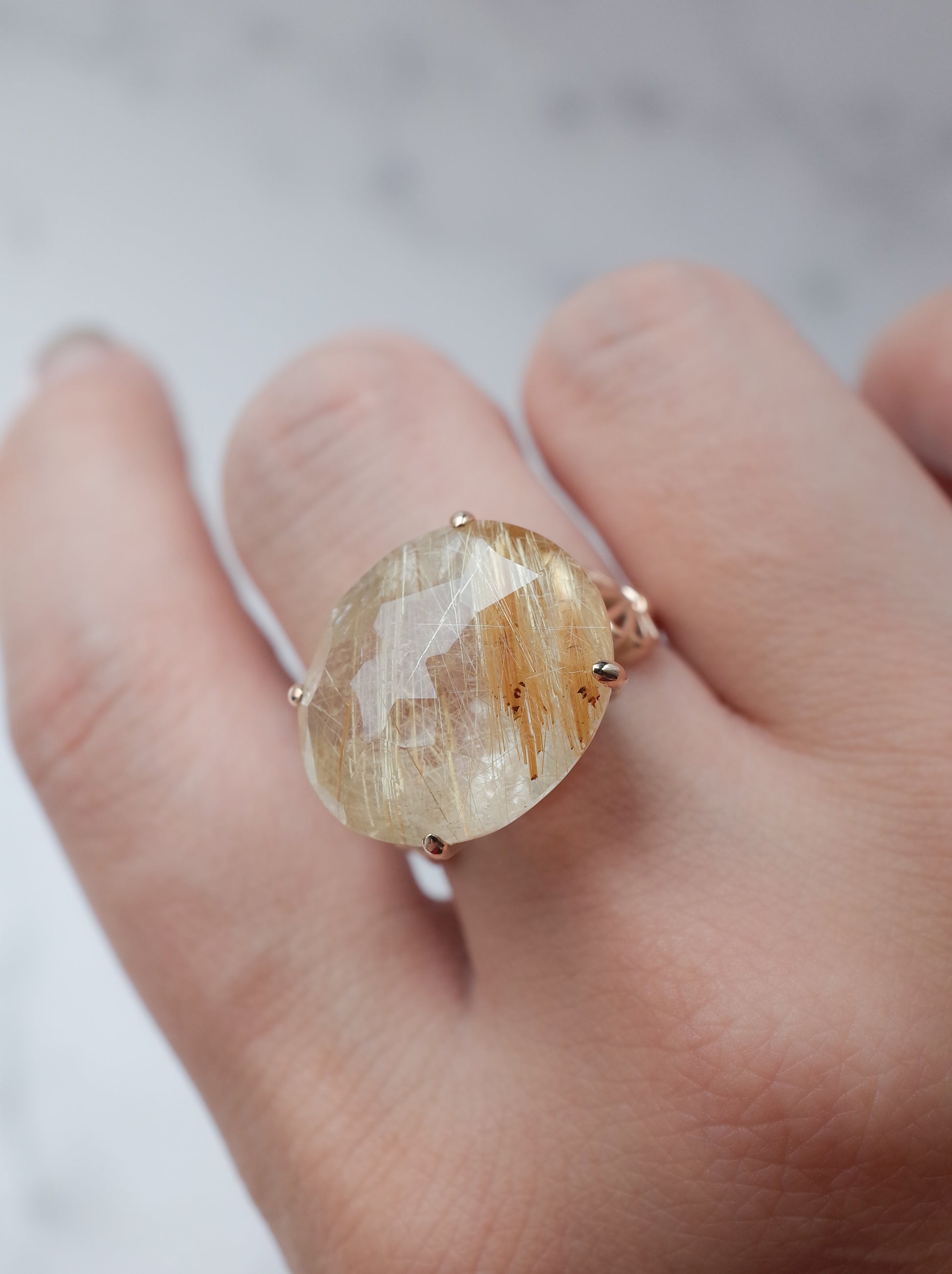 こちらのルチルクォーツは表から星☆が見えるように裏面のカットが施されています。