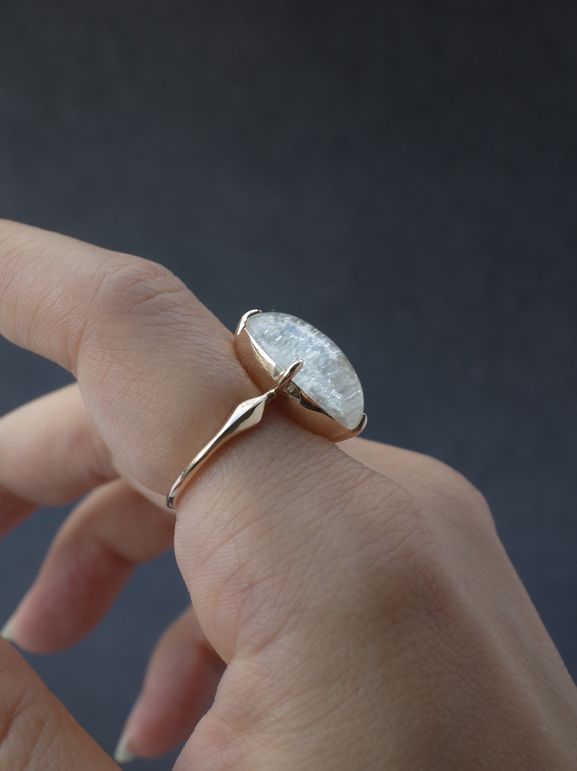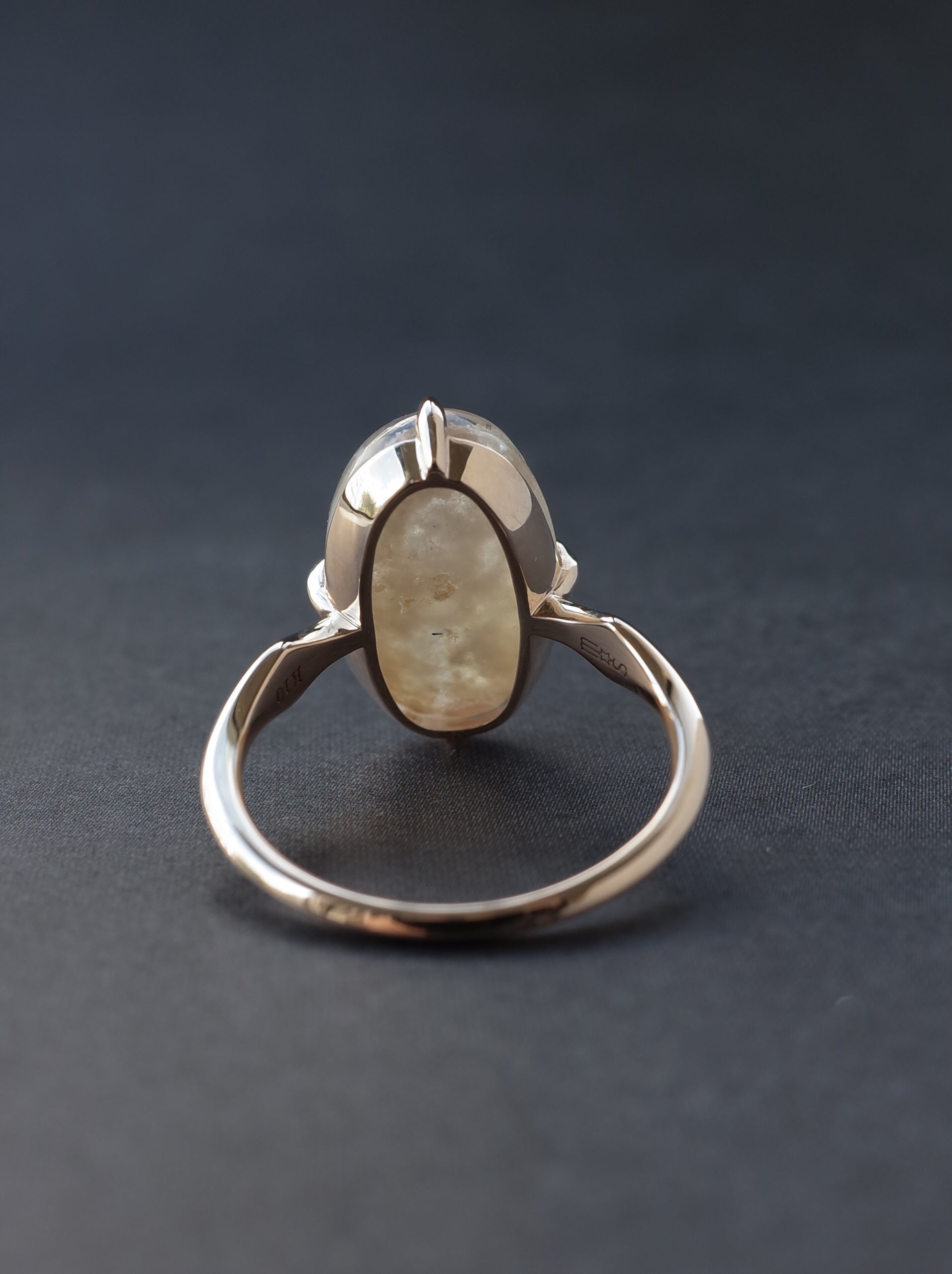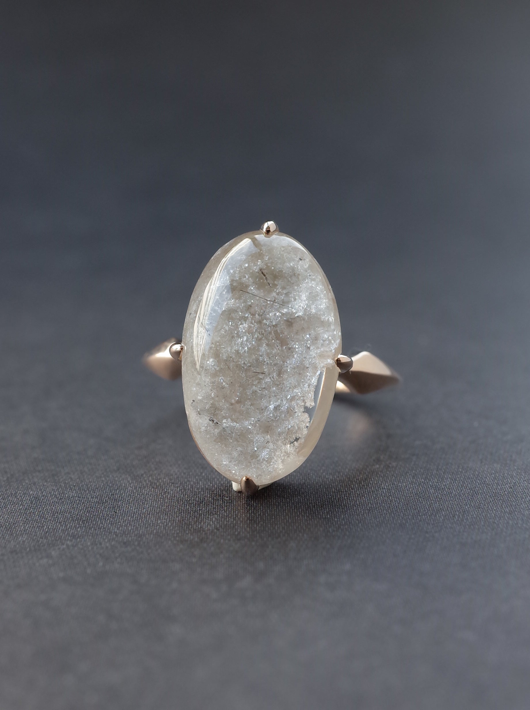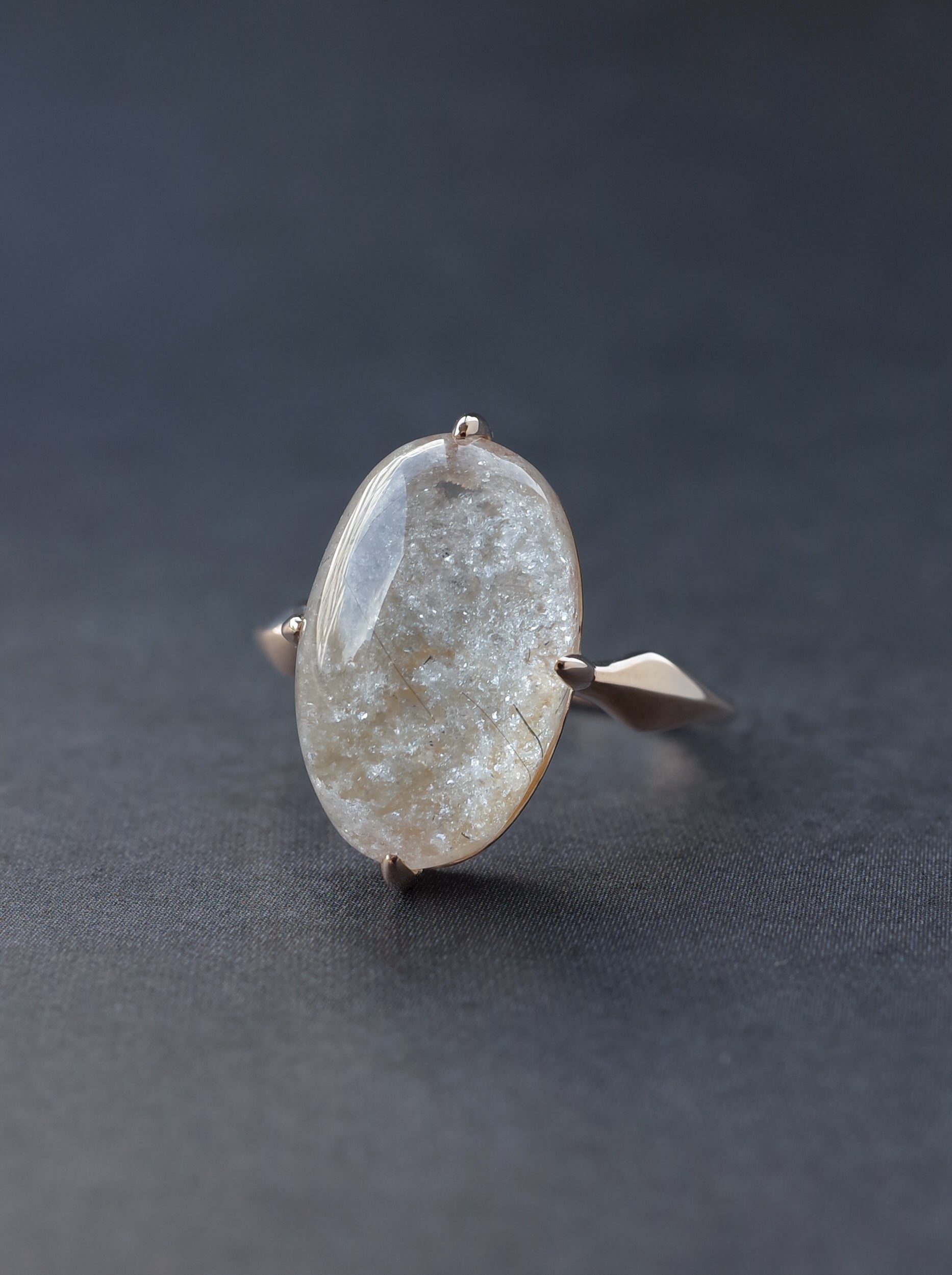 真っ白なインクルージョンが雪のようだったり、空に浮かぶ雲のようだったり、はたまた白猫の毛並みのようだったり。そんな白さが魅力のホワイトガーデンクォーツはMOEMI SUGIMURA の代名詞とも言われる人気の石の1つです。オンラインショップでは、インクルージョンの個性やクォーツの透明度のクオリティーにこだわり、選び抜いた石のみを使用していますので通販でも安心してお求めください。