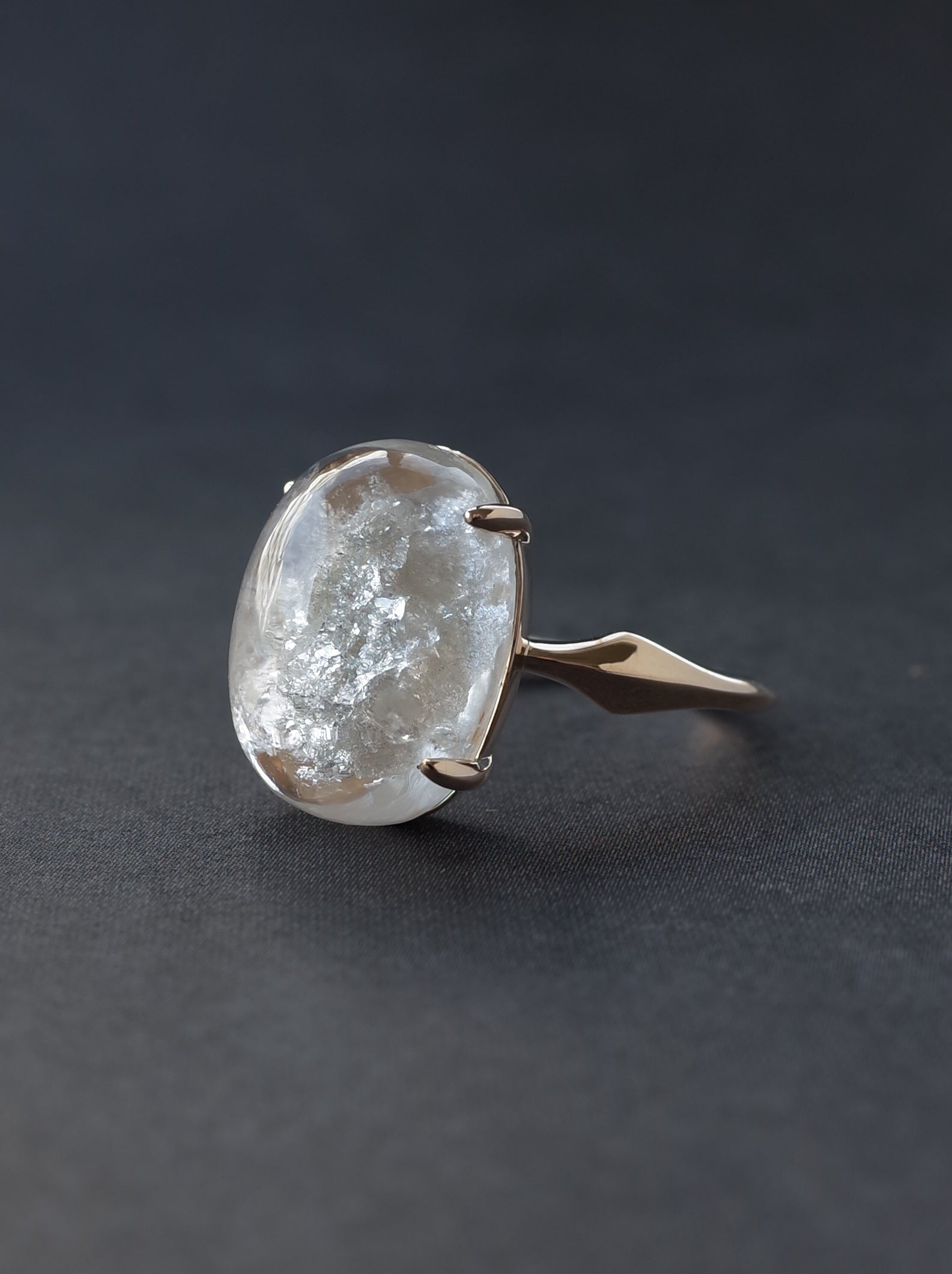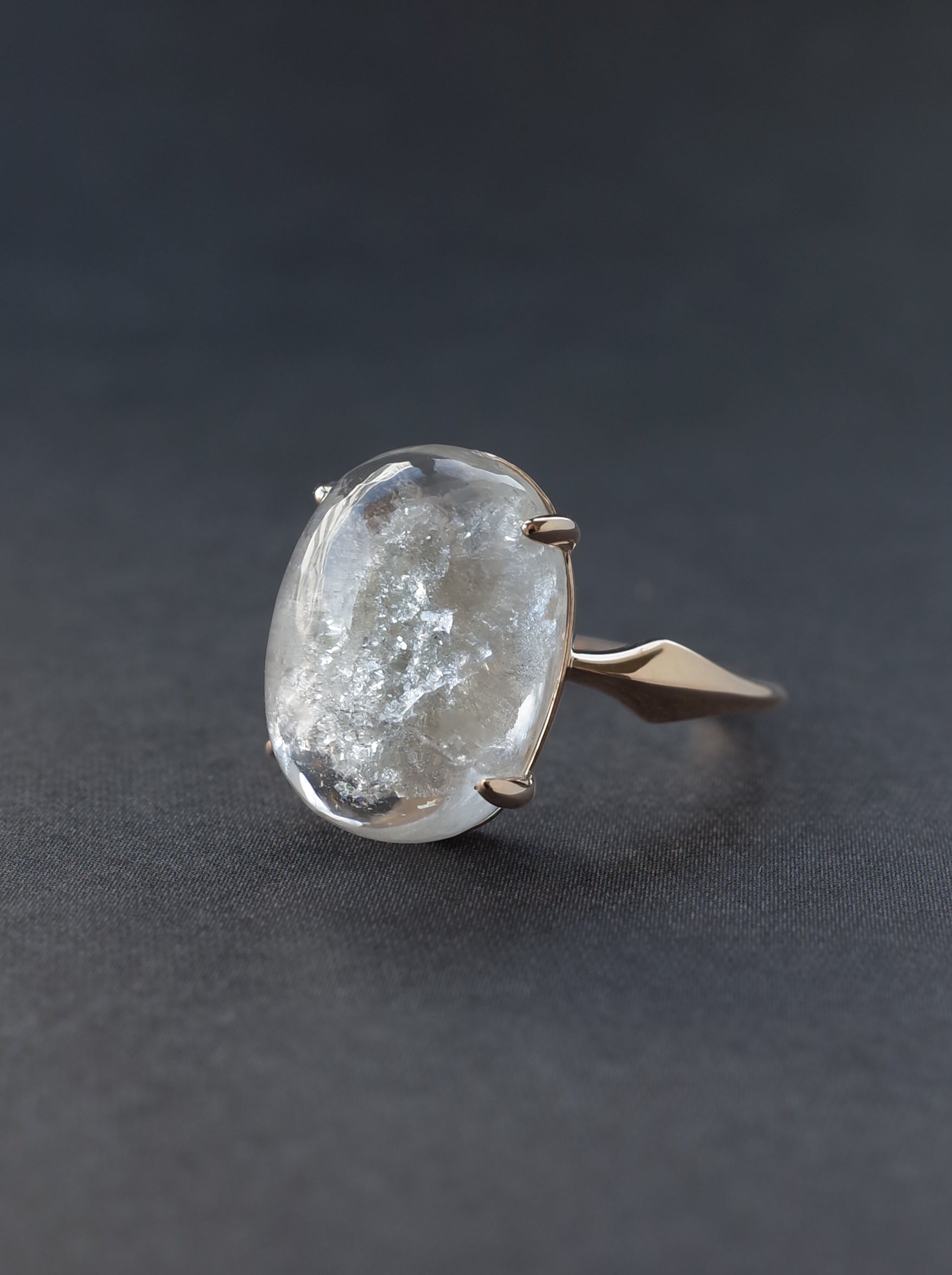 真っ白なインクルージョンが雪のようだったり、空に浮かぶ雲のようだったり、はたまた白猫の毛並みのようだったり。そんな白さが魅力のホワイトガーデンクォーツはMOEMI SUGIMURA の代名詞とも言われる人気の石の1つです。オンラインショップでは、インクルージョンの個性やクォーツの透明度のクオリティーにこだわり、選び抜いた石のみを使用していますので通販でも安心してお求めください。